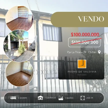 Vendo Casa Pasaje La Tirana 3d+1b+e En Chillán – Excelente